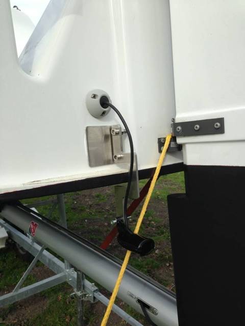 Das Kabel wird dann im Innenraum an der Maststütze nach unten geführt und weiter verkabelt.