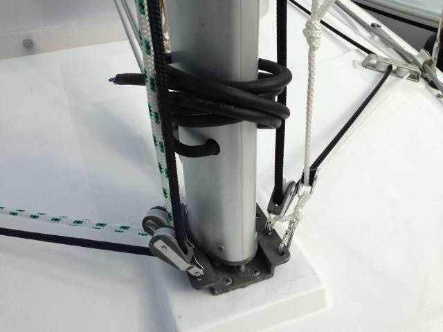 Das Kabel habe ich unten aus dem Mast geführt und werde es demnächst mit einer Decksdurchführung von Scanstrut in den Innenraum legen.