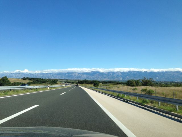 Noch vor Mittag haben wir Zagreb links liegen lassen und rollen auf der Küstenautobahn der Sonne entgegen. Der Verkehrsfunk vermeldet keine Staus. Und das in kroatisch, englisch, deutsch und italienisch! Was für ein Service, ich bin baff.