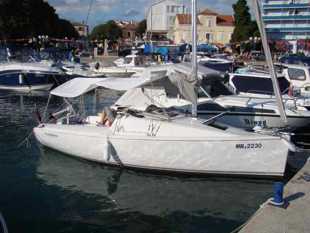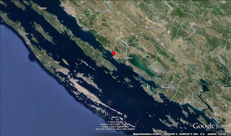 Mit dem Passieren von Zadar steigt die Aufregung, jetzt ist es nicht mehr weit. Runter von der Autobahn, Obolus am Mauthäuschen entrichten, Endanflug auf Biograd, das Thermometer zeigt über 30°C, wir haben den Sommer gefunden!