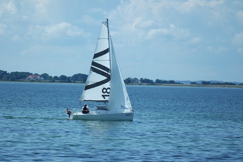 Für unsere VA18 ist das Revier grundsätzlich gut geeignet. Man ist immer irgendwo in Küstennähe und kann so bei stärkerem Wind etwas Landabdeckung suchen. Die Boote mit Flachkiel können darüber hinaus dicht unter Land laufen und sich so den entscheidenden Vorteil beim Höhekneifen verschaffen - wir wenden halt immer erst spät.