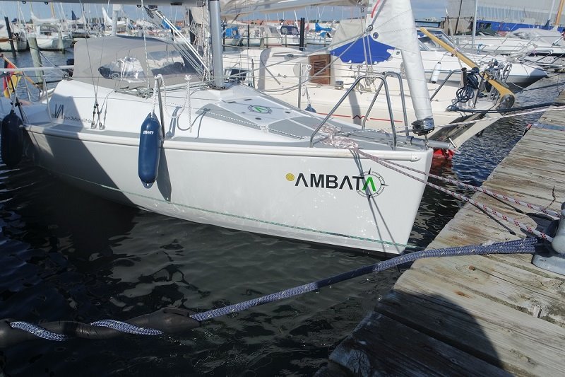 AMBATA liegt derzeit in der Marina in Assens im Wasser und hat für die 5 Wochen Wartezeit extra noch Ruckdämpfer an den Vorleinen spendiert bekommen. Der Hafenmeister hat ein wachsames Auge auf unser Schiffchen und den Trailer, der, wie schon gesagt, direkt vor dem Hafenmeisterbüro geparkt werden durfte.
